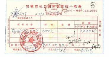 公司對老年協會的捐助3000元,蜀源村8000元
